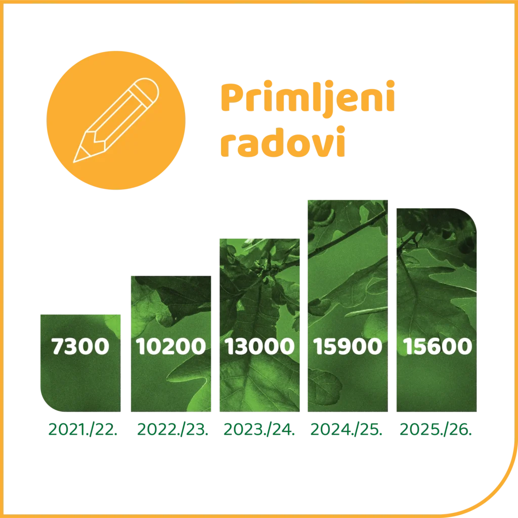 *Tijekom 2023. godine udvostručili smo svoj „zeleni ulog“ te smo za svaki primljeni crtež zasadili ne jednu, već dvije sadnice stabla, kako bismo doprinijeli bržoj obnovi Spačvanske šume, uništene tijekom olujnog nevremena u ljeto 2023.